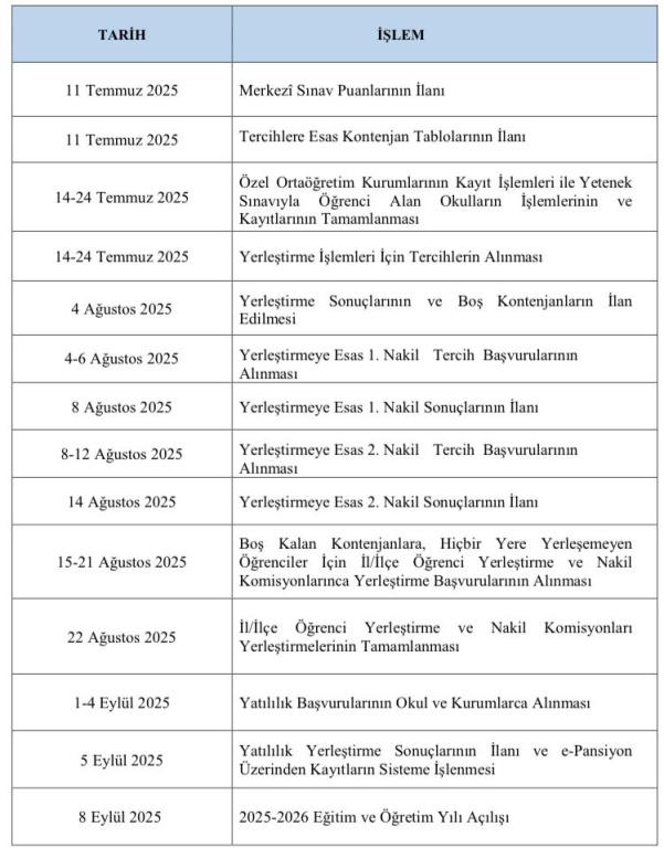 LGS TERCİH TAKVİMİ